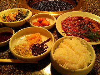 カルビにナムルにカクテキにサラダにゴハンこれだけでも十分ですが…。