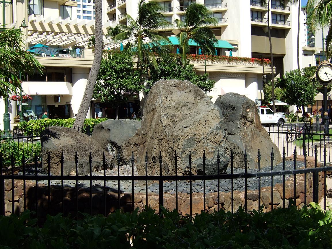 ハワイアン達はワイキキの東に位置するカイムキから岩を切り出し記念碑とすることとし、