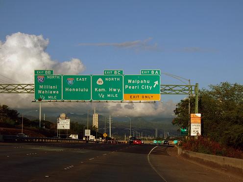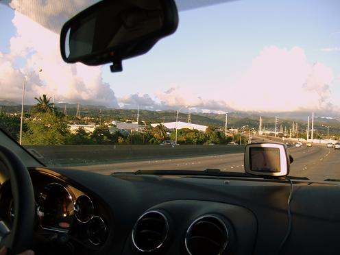 ナビをホテルに設定して、ホノルルへ向けてぐんぐん進みます。