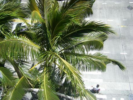 ホテルのベランダから下を見るとそこにヤシの木                    【Type:T】