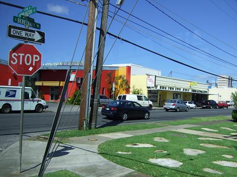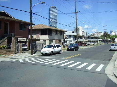 空港からワイキキへ向かうバスの中から撮影。